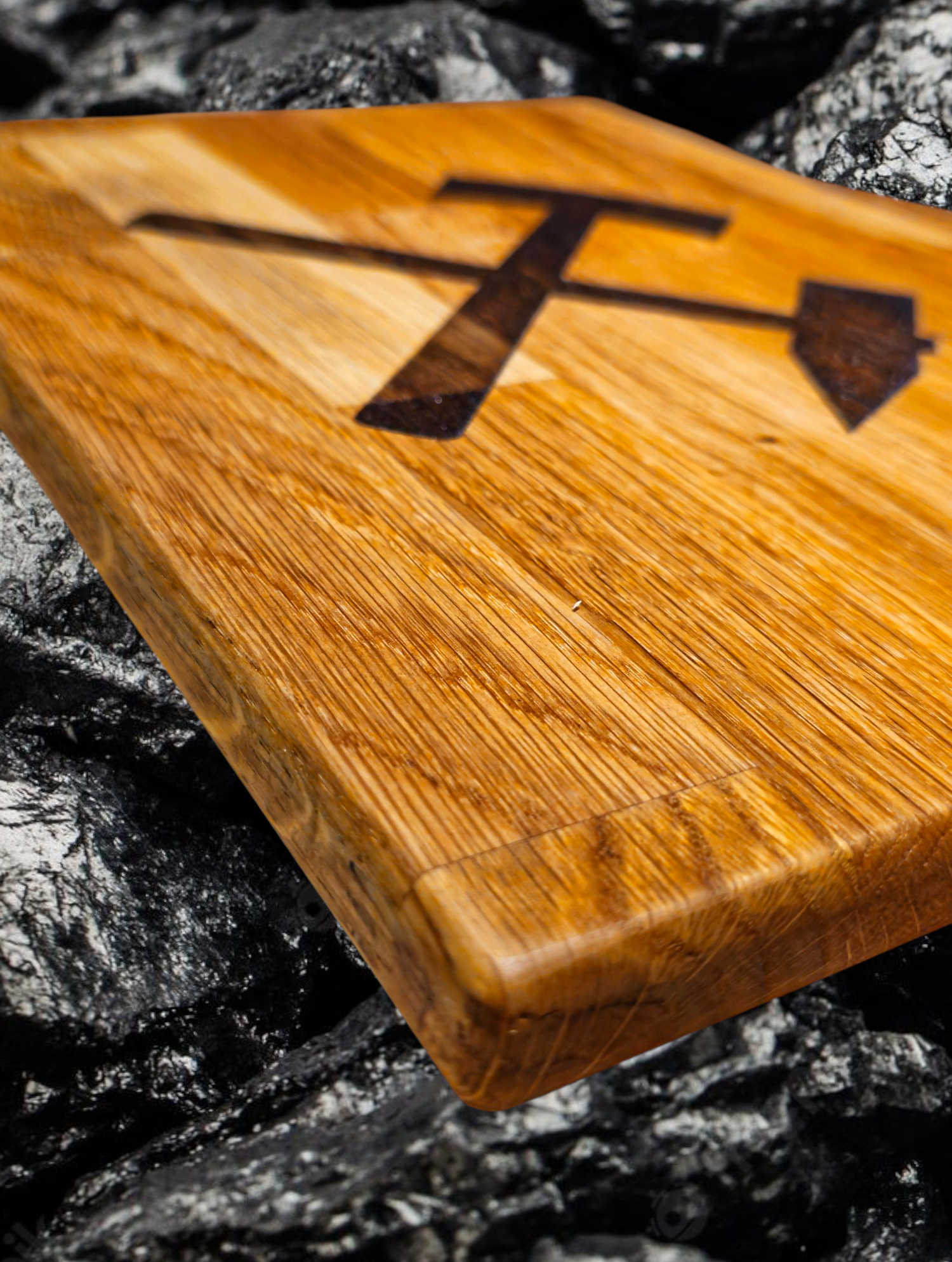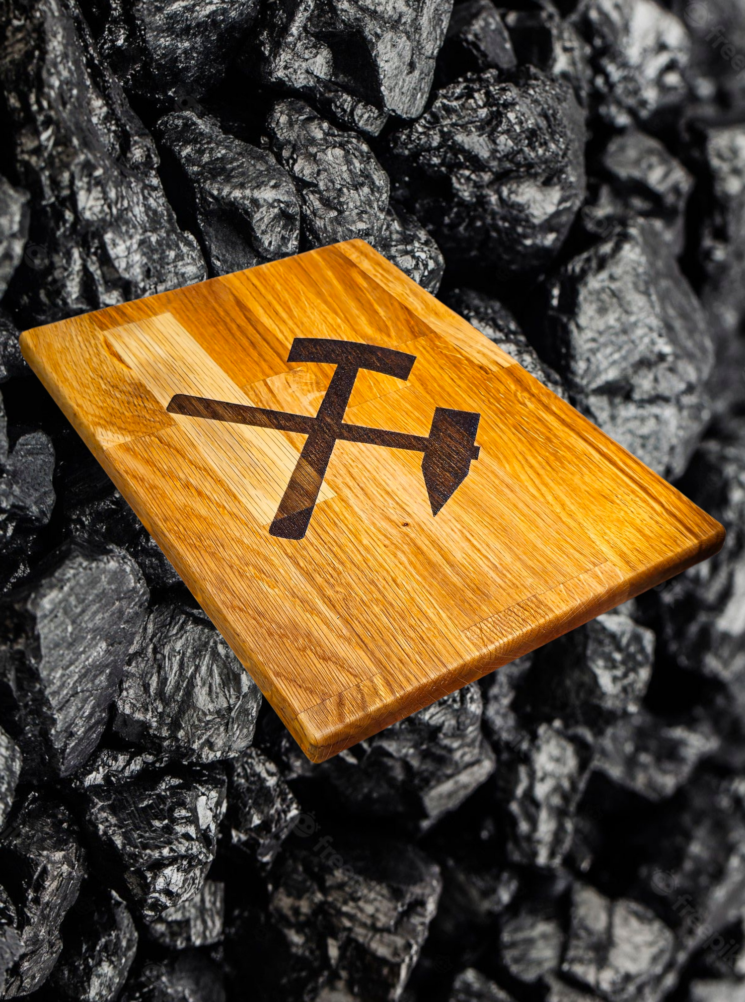 Ob in der Küche, im Restaurant oder als Geschenk für echte Genießer – unser handgefertigtes Schneidebrett aus massiver Eiche bringt Charakter auf den Tisch. Mit dem traditionellen Bergbau-Motiv „Schlägel & Eisen“ graviert, steht dieses Brett nicht nur für Qualität, sondern auch für Herkunft: Echte Handarbeit aus Gelsenkirchen.